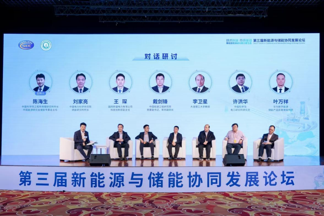 对话研讨环节由中国科学院工程热物理研究所所长陈海生主持,电力储能专委会秘书长、中国电科院储能所所长刘家亮、王琛、戴剑锋、李卫星、中科院电工所研究员许洪华、叶万祥等专家围绕“技术创新·市场驱动,赋能新能源储能融合新生态”主题,作了深入的交流研讨。与会专家从发电、电网、储能、市场等角度,系统分析了新能源高比例接入带来的挑战,提出多元储能协同、长周期储能攻关、市场机制完善等建议,强调构建以储能为核心的新型电力系统,推动“源-网-荷-储”深度融合,助力新能源高质量发展。