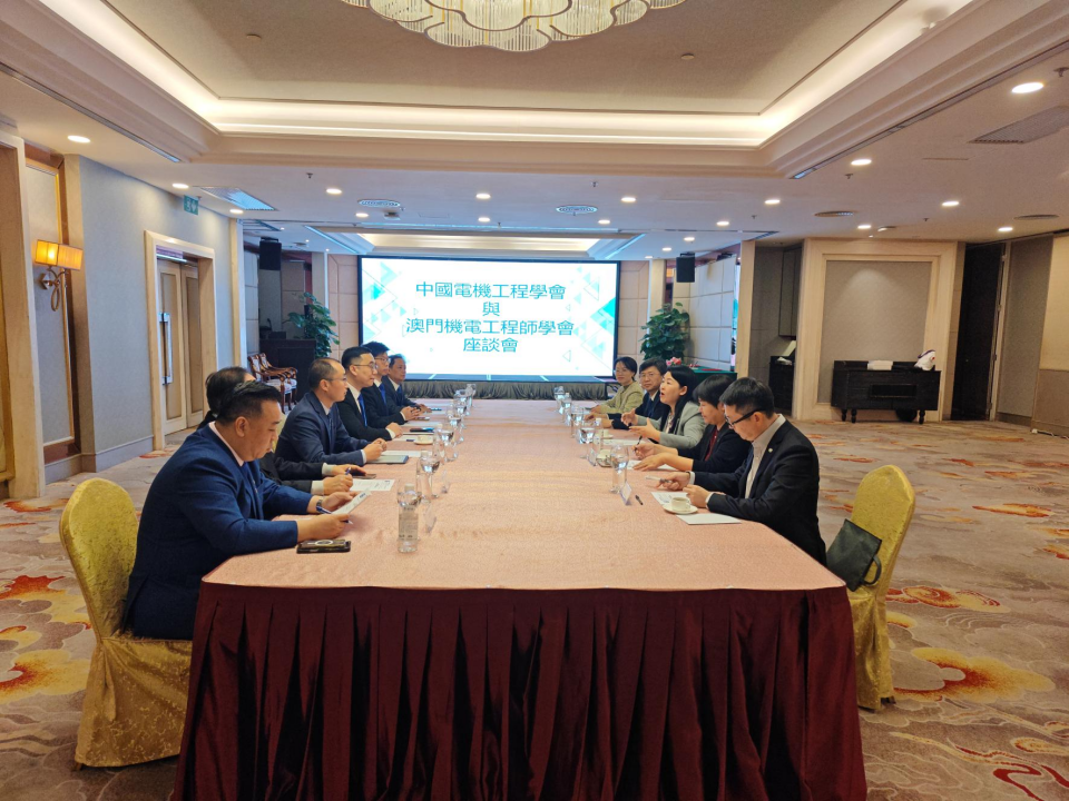 澳门机电工程师学会副理事长苏诗锋、策略顾问容志荣,中国电机工程学会副秘书长赵建军等参加会谈。