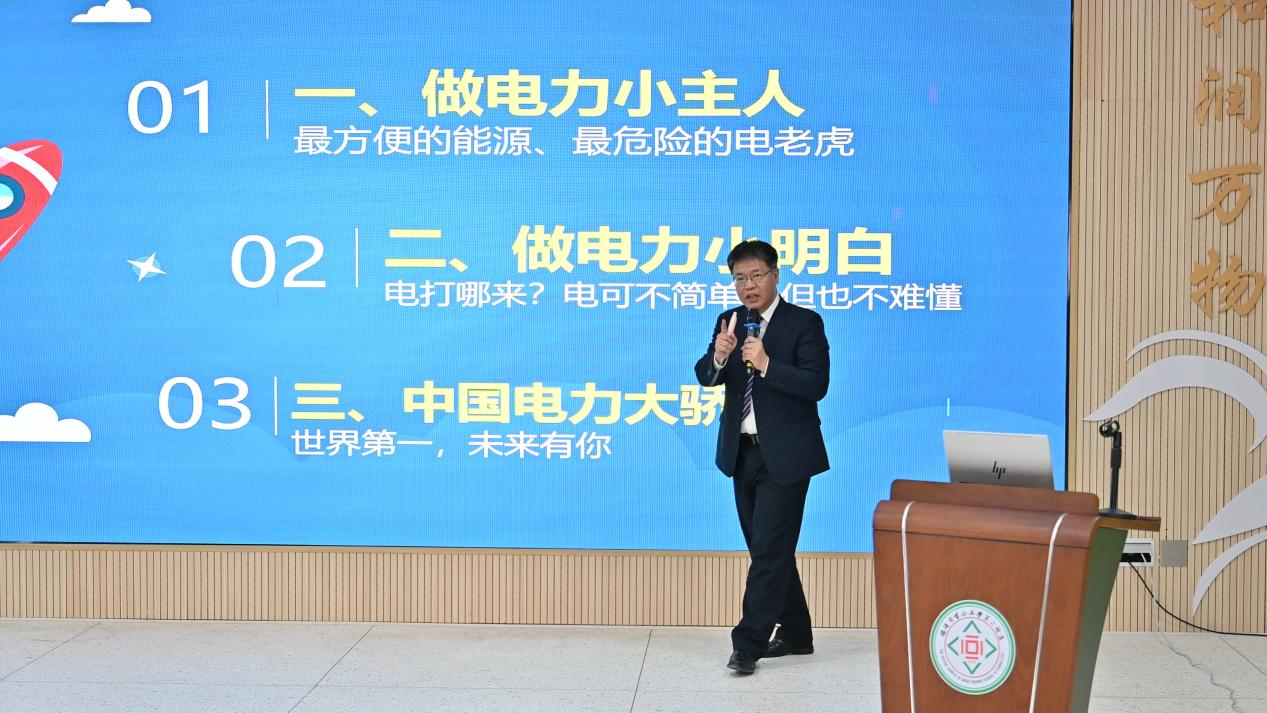 在科普讲座环节,吴雁南老师以《电和我们》为题,从生活中的电出发,深入浅出地讲解了安全用电常识、电从哪里来、以及骄傲的中国电力。